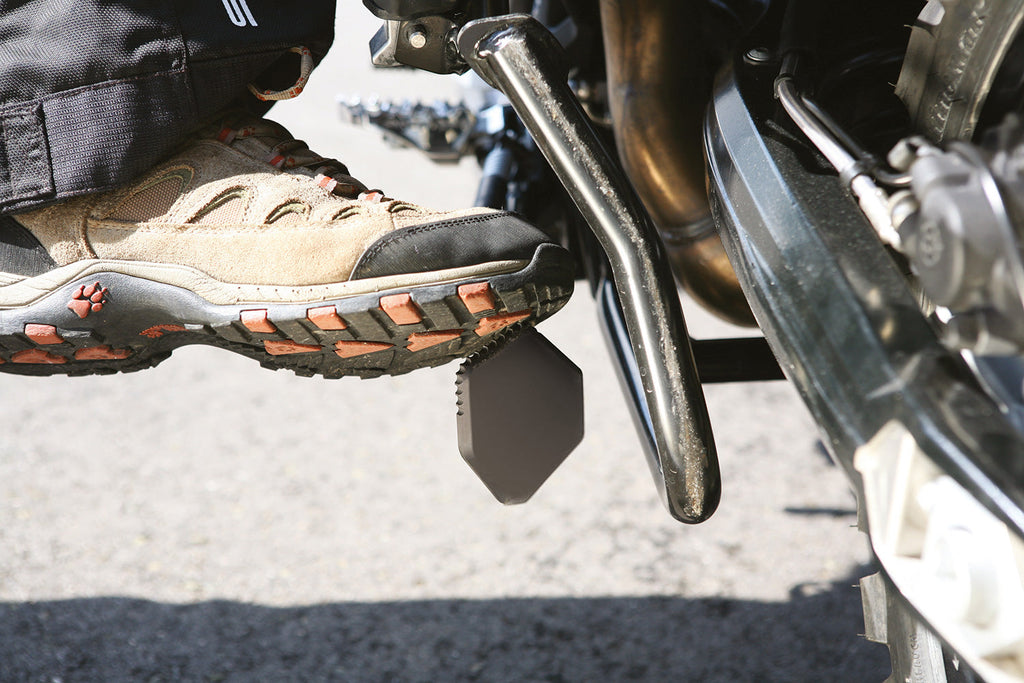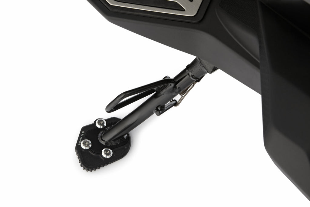 The life insurance for your BMW: The small contact area of the original side stand means there is a risk of your BMW slowly sinking, often unnoticed, on both hot tar surfaces as well as on lightly chewed up ground. A precisely milled enlarger that can be quickly screwed onto the side stand effectively eliminates this design flaw. And to ensure that the side stand can be easily folded out with the heel of your boot, we've also incorporated external teeth.